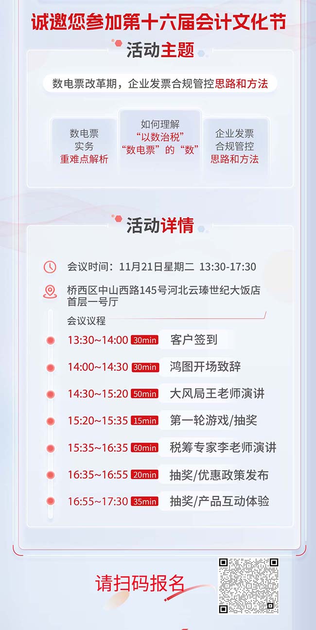 隨著全電發(fā)票的試點(diǎn)工作不斷推進(jìn),全電發(fā)票時(shí)代即將到來(lái)!為了幫助大家更好地迎接 數(shù)電發(fā)票-“以數(shù)治稅”新時(shí)代的到來(lái),了解更多數(shù)電票注意事項(xiàng)。我們特別邀請(qǐng)您參加這場(chǎng)重要的會(huì)議。