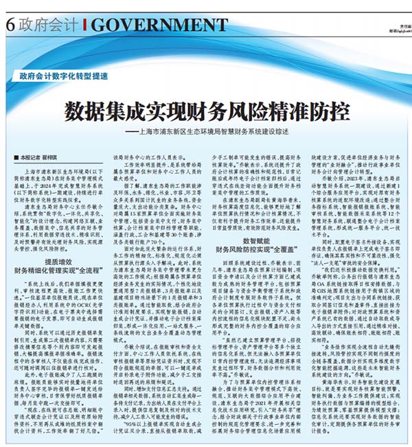 在浦東生態(tài)局副局長(zhǎng)黃海華看來(lái),財(cái)務(wù)核算高度信息化,能夠更好地了解單位預(yù)算執(zhí)行情況和會(huì)計(jì)核算情況,不僅有利于提升財(cái)務(wù)工作效率,還能提升日常監(jiān)管質(zhì)效,有效防范財(cái)務(wù)風(fēng)險(xiǎn)發(fā)生。