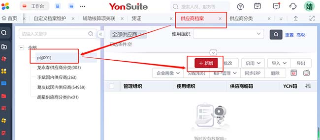 解決方案:數(shù)字化建模 > 基礎(chǔ)數(shù)據(jù) > 供應(yīng)商-供應(yīng)商分類,點(diǎn)擊【新增】,再到供應(yīng)商檔案里面點(diǎn)擊新增即可